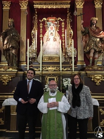 Arte Sacro. La Hermandad de Ntra. Sra. de los Reyes, patrona de los Sastres, al término de la Santa Misa y la Sabatina a su Titular que se celebró ayer sábado, obsequió a Manuel Martín Fajardo, Pregonero de las Glorias de Sevilla de este año, con un rosario de la Santísima Virgen así como unos pasadores exclusivos realizados por la hermana de esta Corporación, Ana Cerrejón.