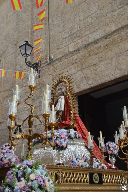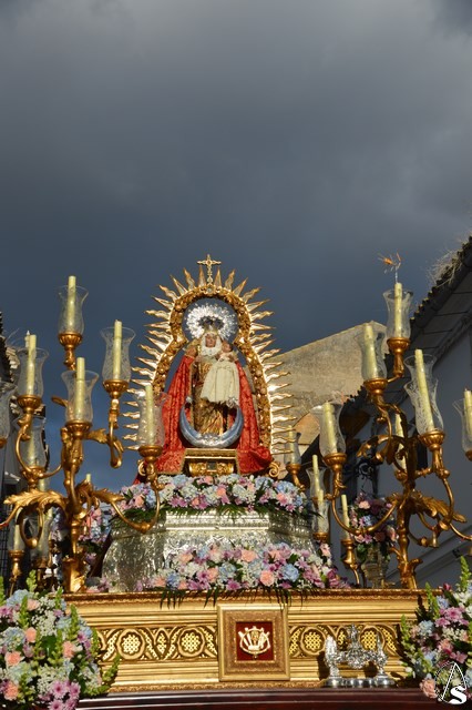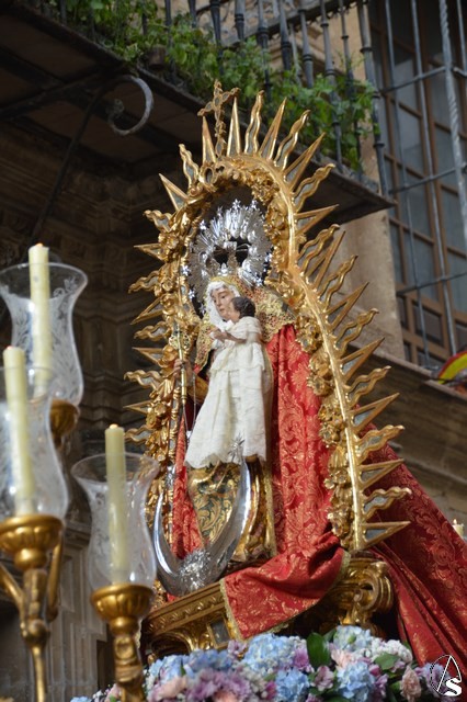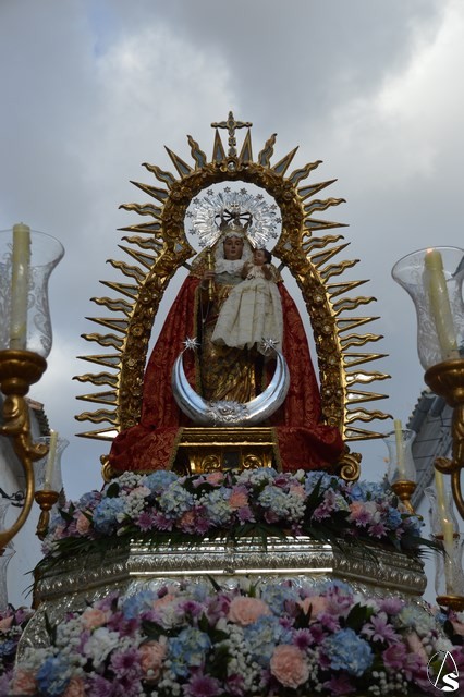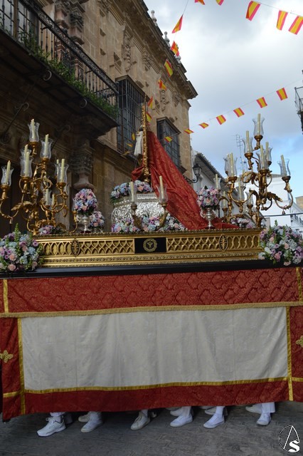 Desde el año 2013 Nuestra Señora de la Cabeza procesiona portada por costaleros sobre el paso del Triunfo de la Cruz de la Hermandad del Santo Entierro y sobre peana de plata, anteriormente procesionaba sobre unas sencillas andas. En las esquinas estuvo alumbrada por candelabros de guardabrisas que portaban pequeñas campanas. La procesión partió desde la Iglesia de Santa Clara desde donde la Hermandad del Santo Entierro realiza Estación de Penitencia debido a la escasa altura de su sede, la Iglesia de San Carlos de El Real.
