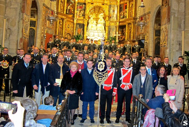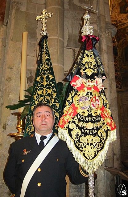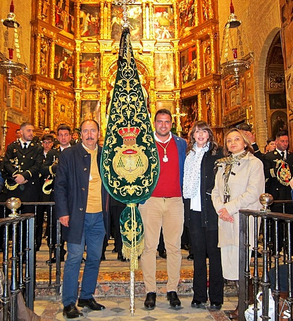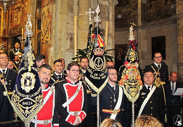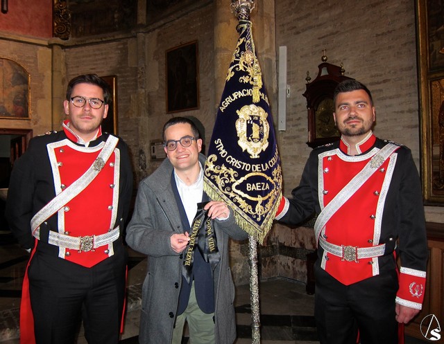 Se impusieron unos lazos con el mensaje “HAZTE DONANTE-DONA VIDA” al banderín de la A. M. de Columna y Lágrimas de Baeza y al estandarte de la Hermandad de la Veracruz de La Algaba. El primero lo puso Rafael Cejudo, un joven trasplantado de pulmón e hígado hace ya 15 años. El segundo Carmen de Jesús Gutiérrez, una joven luchadora que recibió un trasplante hepático tras una larguísima enfermedad y que ahora toca en la Banda de Música de esta Hermandad.