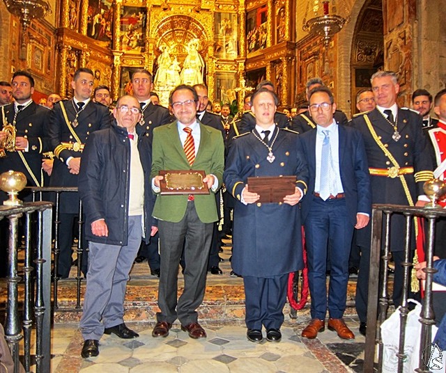 Personas trasplantadas, un enfermo que está en lista de espera y familiares de donantes de órganos fallecidos entregaron unas placas de agradecimiento, en nombre de las Asociaciones de Trasplantados y de la Dirección General de Trasplantes del Colegio de Médicos de Sevilla, a las dos Bandas y a la Hermandad de la Esperanza de Triana, que recogió su Hermano Mayor Alfonso Julios Campuzano.