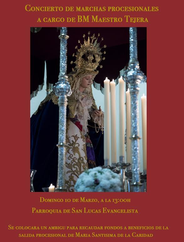 Arte Sacro. El próximo domingo 10 de marzo a las 13 horas en la parroquia de San Lucas Evangelista, tras la finalización de la santa misa de 12 horas, tendrá lugar un concierto a cargo de la Banda Maestro Tejera, formación musical que acompaña el Palio de la Stma. Virgen de la Caridad.