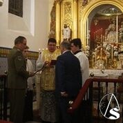 Su Excelencia visitó la sede de la hermandad acompañado de su esposa y del Coronel Jefe de la UAPO del Cuartel General de la Fuerza Militar Terrestre, José Miguel Arroyo Carrillo, quienes fueron recibidos a la puerta de la capilla por una comisión formada por el hermano mayor, Andrés Martín Angulo, que portaba su vara dorada; el teniente de hermano mayor, Juan José Román Llorca, que entregó a Su Excelencia la vara de Teniente de Hermano que le corresponde por su cargo honorario; José Carretero Guerra, Secretario del Consejo General de Hermandades y Cofradías y Miriam Olga de Frutos, Delegada del mismo Consejo y hermana de la corporación, que entregó a la señora del General un sencillo detalle floral de cortesía y el Delegado de Sacramentales, Ernesto Martín, que también representó al organismo cofradiero en el acto. Entre las autoridades civiles asistentes se encontraba también Práxedes Sánchez Vicente, Presidente del Círculo Mercantil e Industrial. Los hermanos mayores de las hermandades del Pilar y de Ntra. Sra. de Guadalupe también ocuparon lugar de honor entre los concurrentes.