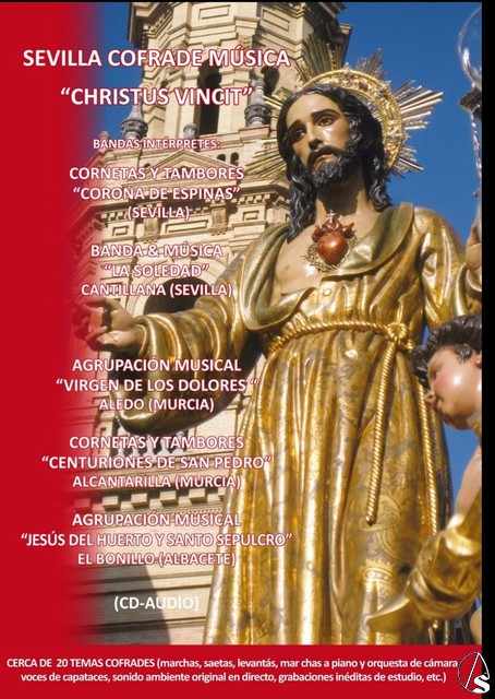 Arte Sacro. Acaba de ver la luz la segunda edición de la colección fonográfica Sevilla Cofrade Música en este caso bautizada con el título de Christus Vincit. El productor artístico del mencionado volumen fonográfico es el sevillano Jose Ramon Muñoz Berros y en el mismo podemos encontrar archivos históricos de bandas como la desaparecida Corona de Espinas y también participan bandas actuales como la de música de la Soledad de Cantillana.