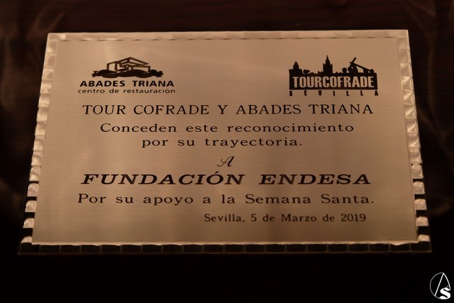 Francisco Azuaga, director de Abades Triana, entregó a la Fundación Endesa un reconocimiento por su trayectoria y apoyo a la Semana Santa, que fue recogido por el Director de Relaciones Institucionales de Endesa en Andalucía y Extremadura, Rafael Sánchez Durán.