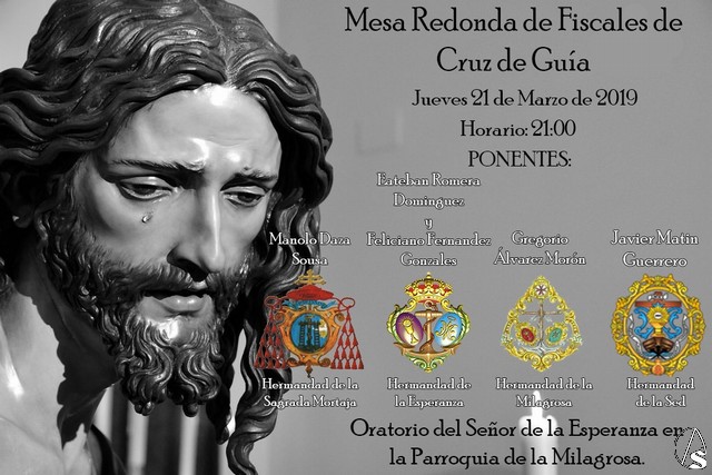 Arte Sacro. El jueves, 21 de marzo, a las 21 horas, la hermandad de la Milagrosa organiza en el oratorio del Señor de la Esperanza en la parroquia de la Milagrosa, una mesa redonda de fiscales de cruz de guía, en la que actuarán de ponentes: