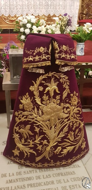 Arte Sacro. Ayer miércoles fue presentada y bendecida una nueva saya que ha realizado Francisco Carrera Iglesias para Nuestra Señora de la Esperanza de Triana, que ha sido donada por un numeroso grupo de hermanos y devotos.