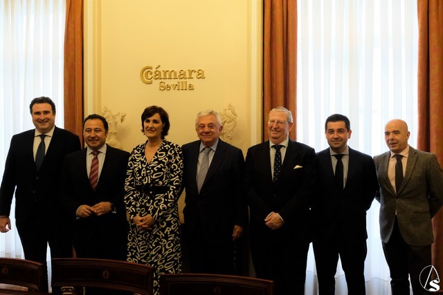 En el acto estuvieron presentes el presidente de la Cámara de Comercio, Francisco Herrero, el presidente del Consejo de Cofradías, Francisco Vélez, el director de Fiestas Mayores del Ayuntamiento de Sevilla, Carlos García Lara y representantes de los partidos políticos del PP y Ciudadanos.
