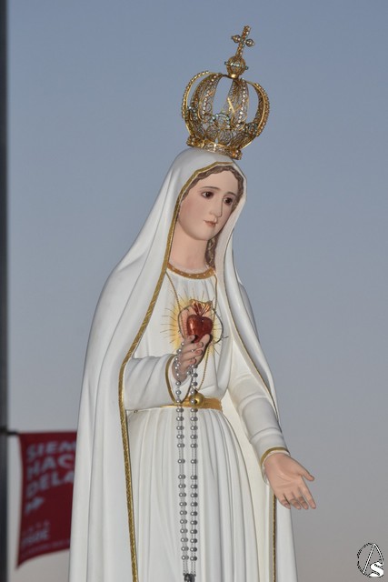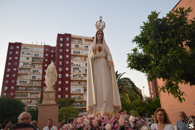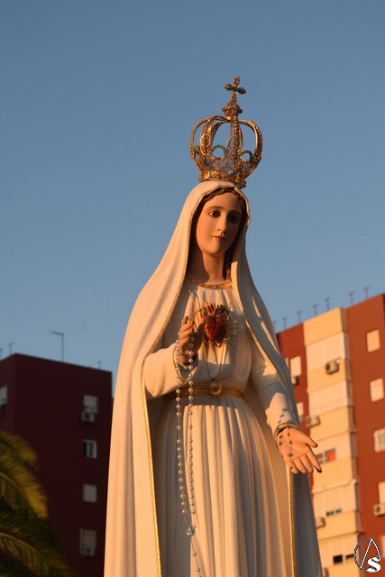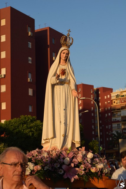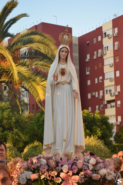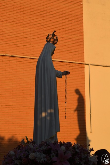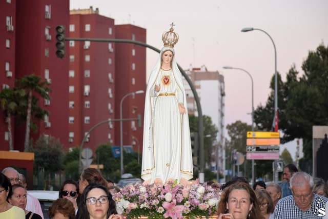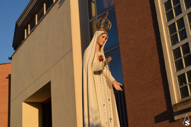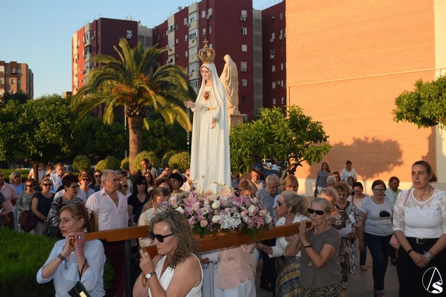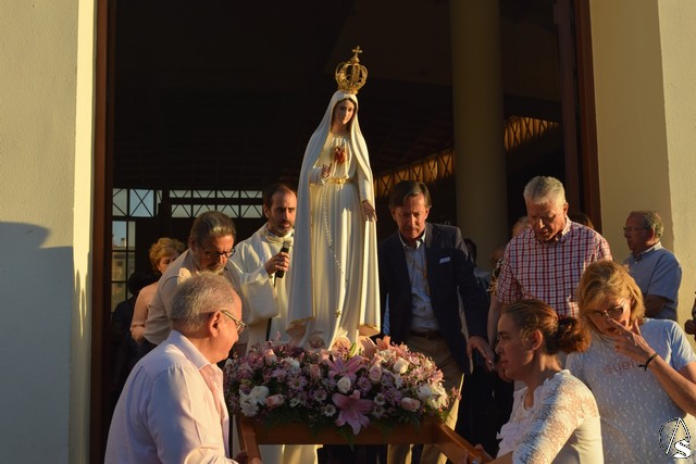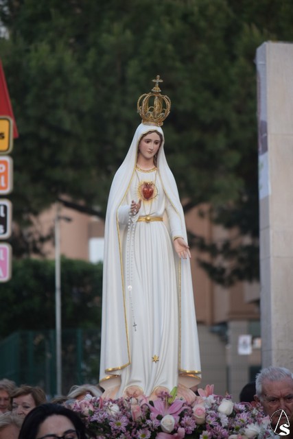 Al finalizar tuvo lugar una procesión con la imagen de la Virgen de Fátima que se venera en la capilla sacramental por los alrededores del templo, llevada a hombros en unas sencillas andas por todo los devotos mientras se rezaba el Santo Rosario.