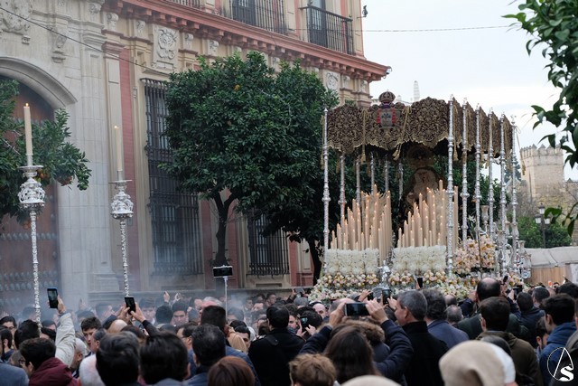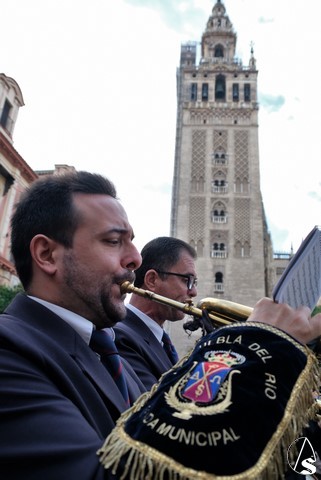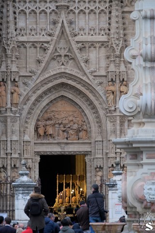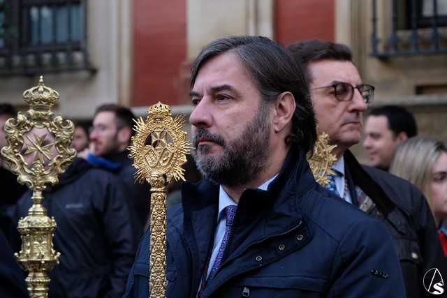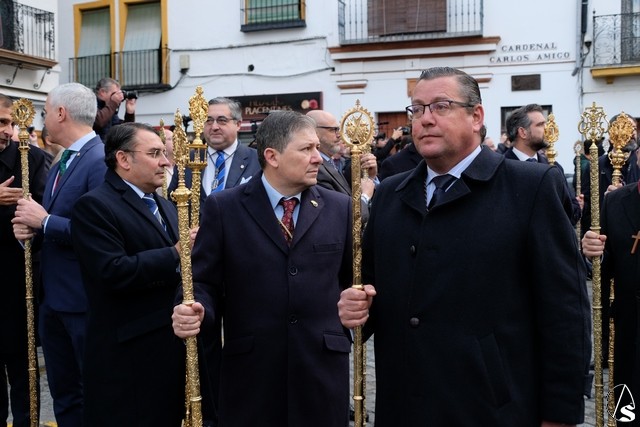 El recorrido de vuelta hizo que se pasara por el Convento de San Leandro, donde se rezó el Ángelus y por la iglesia de Santiago, sede de la hermandad de la Redención.