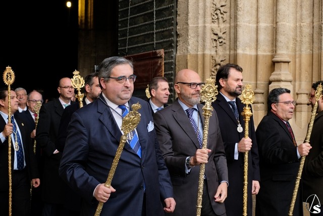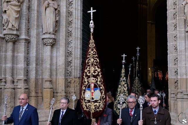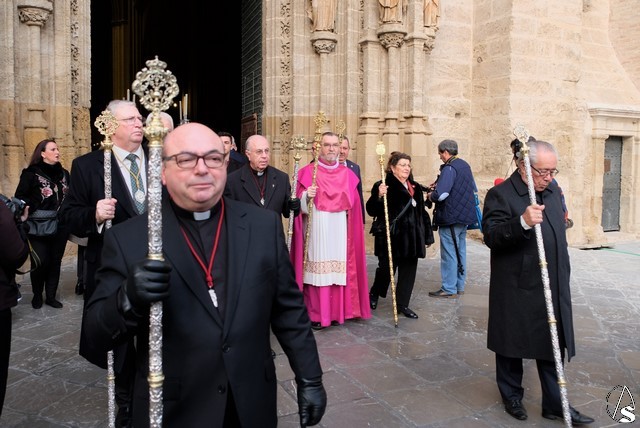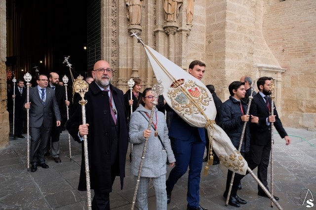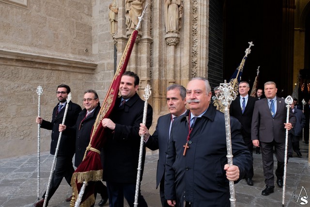 Esta procesión comenzó a salir desde la Puerta de los Palos de la Catedral a las 9 de la mañana donde la Agrupación musical de la hermandad de San Benito abrió el cortejo.