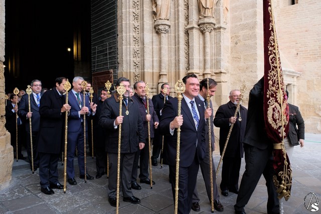 Muchas representaciones de hermandades acompañaron con su estandarte y varas, hasta la Plaza de la Pescadería donde se retiraron.