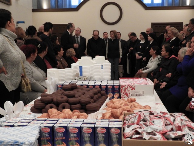 Además de recoger las cestas con productos navideños (hasta 300 kilos de dulces de Navidad) y de primera necesidad, que reúnen cada año las Hermandades de Sevilla, los vecinos del Polígono Sur disfrutaron de un desayuno amenizado por la coral de Montequinto. Además, en este acto se hizo entrega de dos cheques en forma de aguinaldos tanto a la Parroquia de Jesús Obrero, como al Centro Infantil La Providencia del Polígono Sur, con el que también colabora durante todo el año el proyecto Fraternitas.