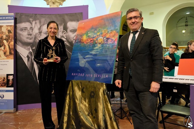 El patio del Círculo Mercantil acogió la presentación del cartel de la Navidad que organiza la Asociación de Belenistas de Sevilla, obra de María Bejarano.