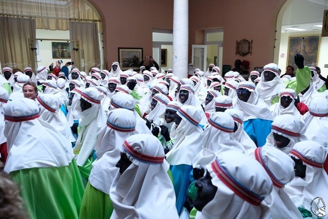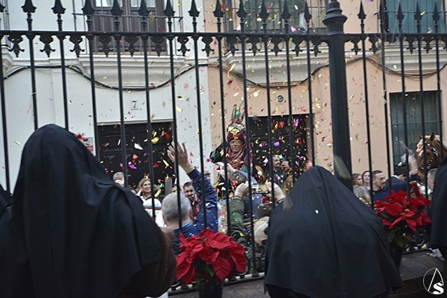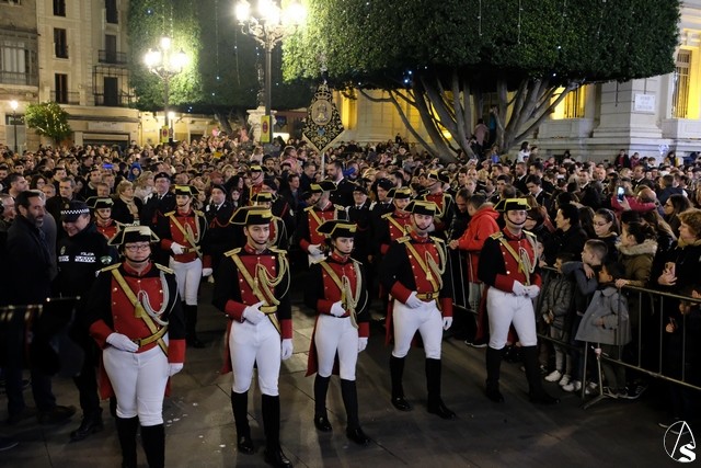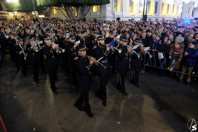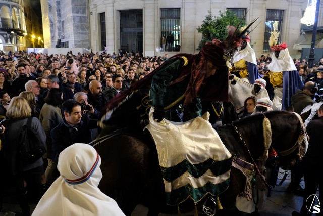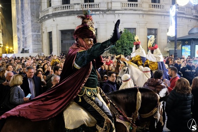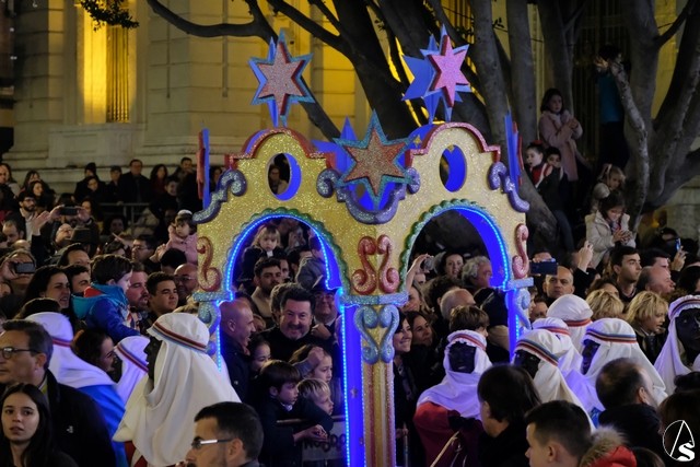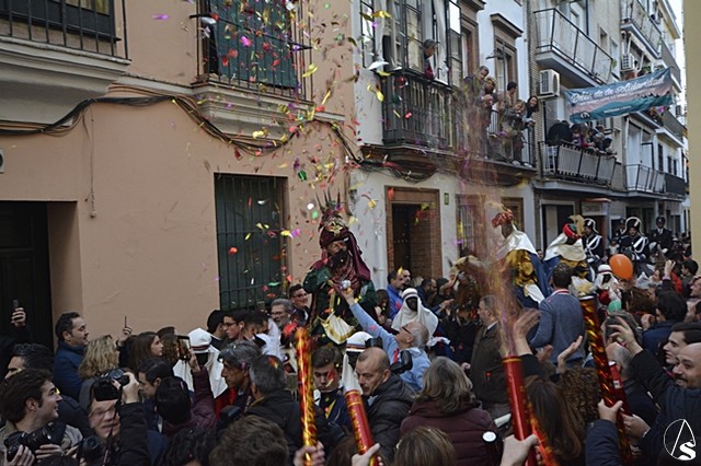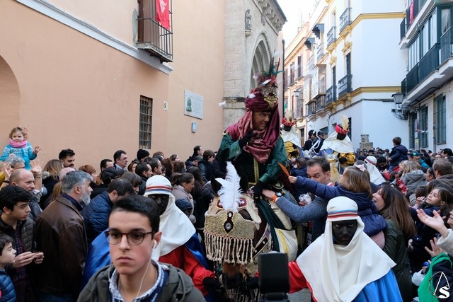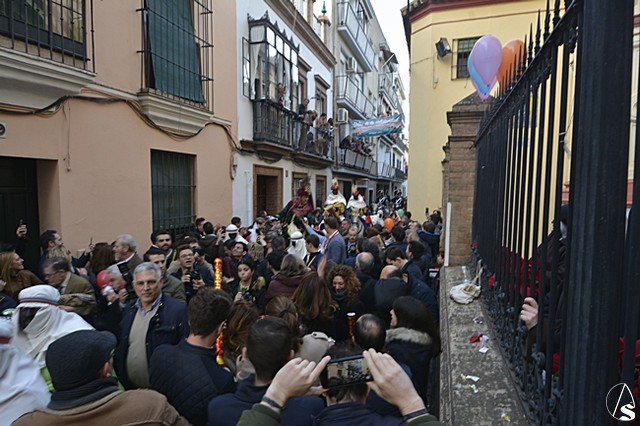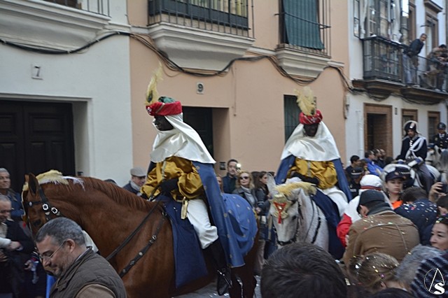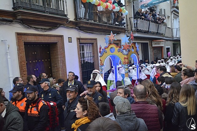 A las 17 horas salieron de la sede del Ateneo, sito en la calle Orfila, todo el séquito del Heraldo compuesto por la agrupación musical Virgen de los Reyes abriendo el cortejo, beduinos a pie y los portadores del palanquín donde se depositaban las cartas para S.S.M.M. Acompañaban además los que encarnarán a los Reyes Magos y demás personajes integrantes de las carrozas, junto con el Presidente del Ateneo Alberto M. Pérez Calero, y otros directivos de la Docta Casa.