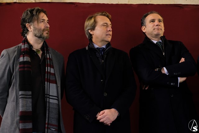 A las 19 horas, llegó la comitiva al Arquillo del Ayuntamiento, donde les esperaba el alcalde de la ciudad, junto con el delegado de Fiestas Mayores, Juan Carlos Cabrera, Álvaro Pimentel por el grupo Ciudadanos y los concejales del PP, Rafael Belmonte y Juan de la Rosa.