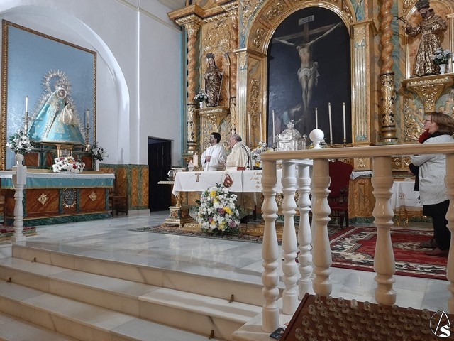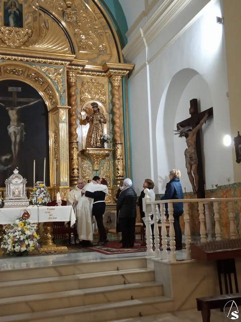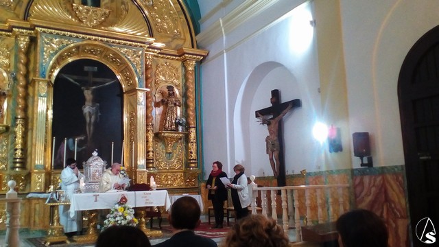 La Santa Misa fue oficiada por el Rvdo. Fray Enrique Parra Llorente, OFM, asistente de la fraternidad “Maximiliano Kolbe”, de Sevilla, siendo recibida por la actual Ministra en Sevilla de la Orden Franciscana Seglar, y actuando como testigos varios miembros de dicha Orden Hispalense. La colocación de la aspirante tuvo también una gran simbología, ya que se situó en el presbiterio, justo delante del Santísimo Cristo de la Vera Cruz, advocación netamente franciscana, teniendo además, a su derecha, la imagen de San Francisco de asís, del retablo mayor.