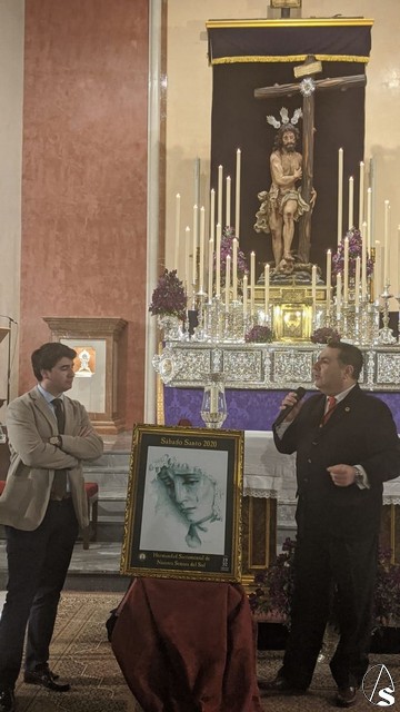 Arte Sacro. El pasado sábado, tras la conclusión del quinto día de quinario al Santo Cristo Varón de Dolores, se procedió a la presentación del tradicional cartel del Sábado Santo de la hermandad del Sol.