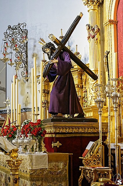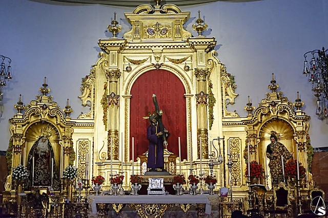 Arte Sacro. El pasado lunes día 11 de mayo se reanudó el culto con asistencia de fieles, la Basílica de Nuestro Padre Jesús del Gran Poder cumpliendo con el aforamiento de la Basilica a 1/3 de su capacidad, en el que el Señor de Sevilla recibe a los fieles desde el Presbiterio, dejandonos una imagen para la historia.