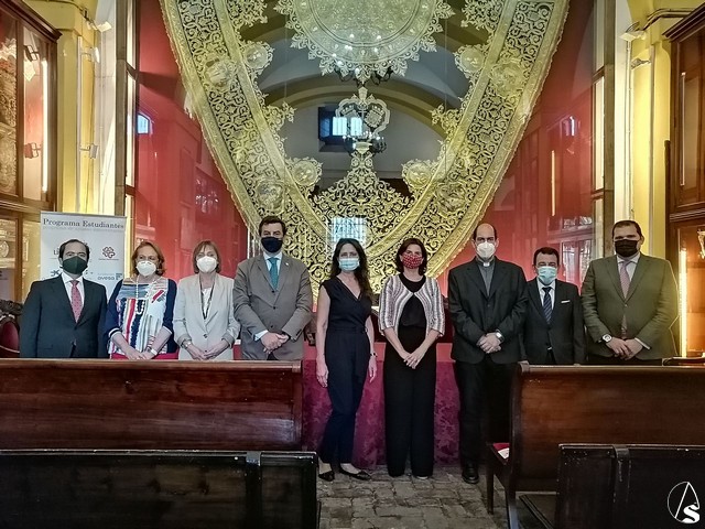 La firma oficial del convenio de colaboración y presentación pública del programa ‘Estudiantes’ ha tenido lugar este jueves en el vestíbulo del Rectorado de la Universidad de Sevilla en un acto en el que han participado el director de Caritas Diocesana Universitaria, Andrés Pablo Guija Rodríguez, la presidenta de la Fundación Persán, Concepción Yoldi García, la directora territorial de CaixaBank en Andalucía Occidental, María Jesús Catalá Buera, la presidenta de la Fundación Ayesa, Ana Mª Manzanares Abásolo, el representante de la Fundación Caja de Ingenieros, Juan Antonio González Marín, el presidente de Automóviles Berrocar, Manuel Berrocal, la directora del Secretariado de Relaciones Institucionales de la Universidad de Sevilla, Elena Leal, así como el hermano mayor de Los Estudiantes, Jesús Resa Rodríguez, y el coordinador general del programa y diputado de Acción Social de la cofradía universitaria, José Antonio de Paz Crespo.