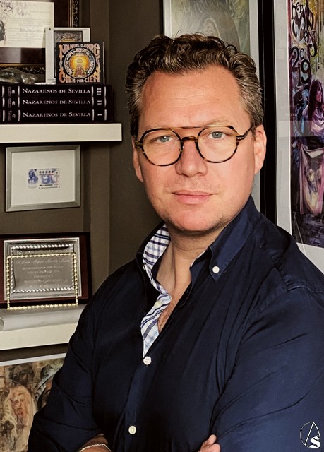 Su temática se centra en el mundo cofrade visto desde una perspectiva actual e innovadora renovando escenas costumbristas y composiciones trasladadas a nuestros días.