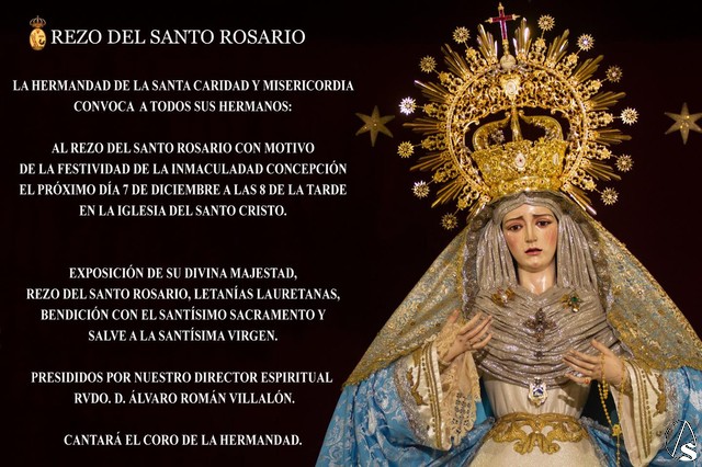 Al rezo del Santo Rosario con motivo de la festividad de la Inmaculada Concepción hoy lunes 7 de diciembre a las 20:00 horas en la Iglesia del Santo Cristo de la Misericordia.