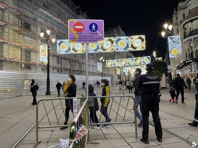 Sevilla Información. El Ayuntamiento de Sevilla, a través de la Delegación de Gobernación y Fiestas Mayores, ha puesto en marcha un dispositivo especial de control de aforos y para evitar aglomeraciones en todo el recorrido entre la Plaza del Duque y la Puerta de Jerez para que las y los sevillanos puedan realizar sus compras y ver la iluminación navideña en condiciones de seguridad sanitaria minimizando el riesgo de contagio por la COVID-19.