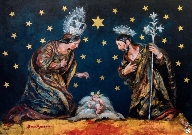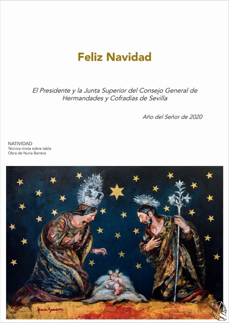 Arte Sacro. El Consejo General de Hermandades y Cofradías de la ciudad de Sevilla vuelve a confiar, por tercer año consecutivo, en Nuria Barrera para ilustrar la tradicional felicitación navideña con la que la institución cofradiera felicita a las hermandades y entidades hispalenses la Natividad de Nuestro Señor Jesucristo.