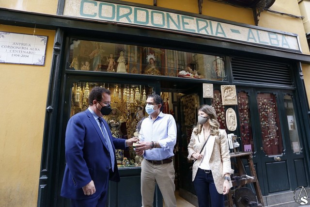 Arte Sacro. El delegado de Gobernación y Fiestas Mayores y del Distrito Casco Antiguo, Juan Carlos Cabrera, ha entregado los tres primeros premios del primer concurso de escaparates de establecimientos de Semana Santa que se ha organizado por parte del distrito Casco Antiguo con el objetivo de contribuir a la dinamización de la actividad comercial. Los premiados han sido Asuca, en la calle Arguijo, (primero); Juan Foronda, en la calle Sierpes (segundo) y la Cordonería Alba, en la calle Francos (tercer galardón). Junto a estos negocios han participado otros 14 establecimientos en esta convocatoria diseñada por el Ayuntamiento de Sevilla, junto Al Centro dentro del programa de actividades en el que colaboran también la Asociación de Hosteleros de Sevilla y Provincia, la Confederación Provincial de Comercio, Servicios y Autónomos de Sevilla APROCOM, la Asociación de Comerciantes Calle Feria y la Asociación de Comerciantes del Barrio de Santa Cruz.