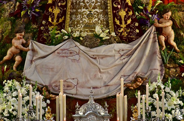 Arte Sacro. La Hermandad del Buen Fin ha elaborado un impresionante altar para la Función al Santo Sudario cargado de significado este Domingo de Resurrección.