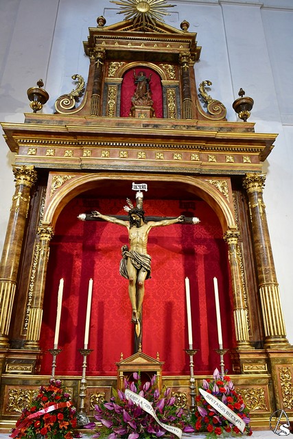 El montaje del altar con el que han celebrado la Función al Santo Sudario estaba compuesto por Nuestra Señora de la Palma Coronada delante de la Cruz del Señor con sudario y escaleras pero sin Cristo, sobre un monte rocoso. A cada lado de la Virgen de la Palma se encontraban las imágenes de San Juan y María Magdalena. Rematando la composición, a los pies de la Virgen, aparece el Santo Sudario sujetado por ángeles.