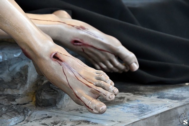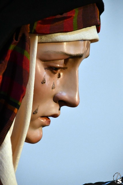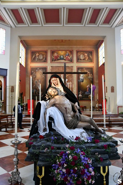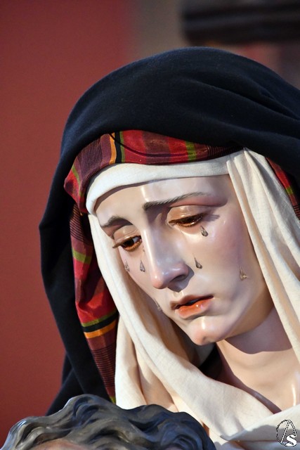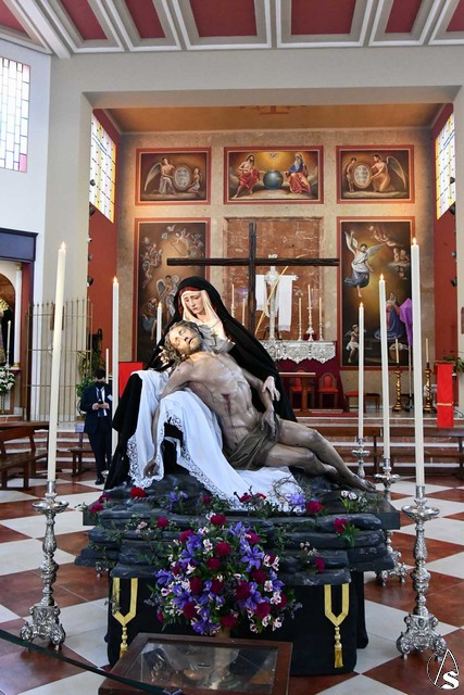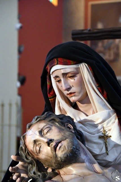 Veneración a la Piedad del Santísimo Cristo de la Misericordia y Nuestra Señora de los Dolores de Coria del Río el día de su salida procesional.