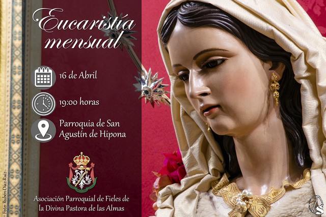 Arte Sacro. La Asociación Parroquial de Fieles de la Divina Pastora de las Almas de Alcalá de Guadaíra, establecida canónicamente en la Parroquia de San Agustín de Hipona, sita en la C/ Párroco D. José Luis Portillo, celebrará Eucaristía mensual en honor de su titular hoy Viernes 16 de Abril.