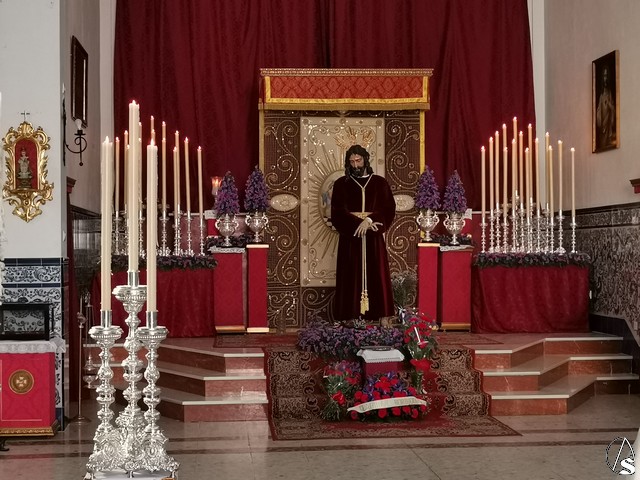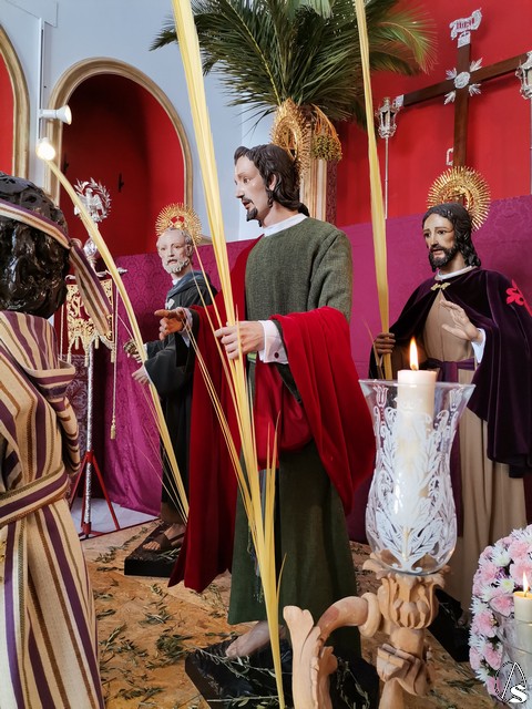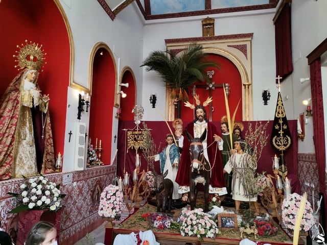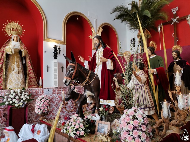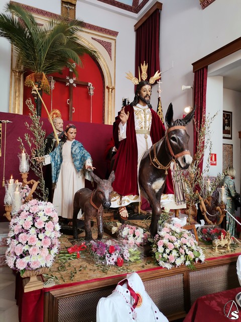 En la calle Lora, en la capilla de la Borriquita nos encontrábamos con el misterio de la Sagrada Entrada en Jerusalén al completo y en la capilla del Cautivo con el Señor Cautivo y Nuestra Señora de la Paz.