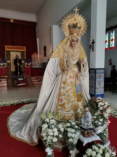 Eduardo Fdez. López. El Domingo de Ramos comenzaba la Semana Santa en Sanlúcar la Mayor con la veneración a los titulares de las dos hermandades que protagonizan este día de inicio de la Semana Santa, la Borriquita y el Cautivo.