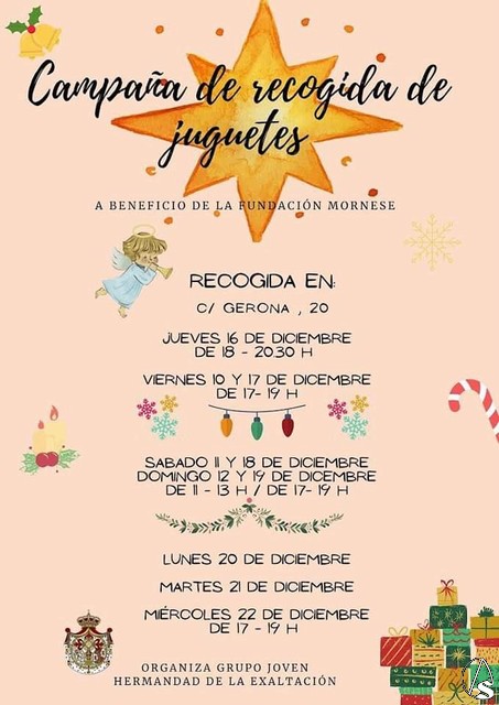 Arte Sacro. Tras el éxito de la iniciativa el pasado año, el grupo joven de la Exaltación vuelve a organizar estas semanas su campaña solidaria de recogida de juguetes a beneficio de la acción social de la hermandad, entre la que se encuentra la Fundación Mornese.