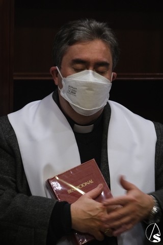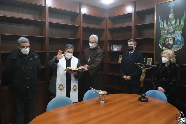 El acto tuvo lugar tras la celebración eucarística semanal que tiene lugar en el Santo Ángel todos los lunes y que en esta ocasión presidió el Delegado diocesano de hermandades, Marcelino Manzano, que fue el que bendijo el inmueble. Estuvo acompañado por el prior del Santo Ángel y presidente de la Asociación, Fray Juan Dobado y el párroco de la Magdalena, Francisco Román. También estuvo el hermano mayor de la hermandad del Carmen del mismo templo.