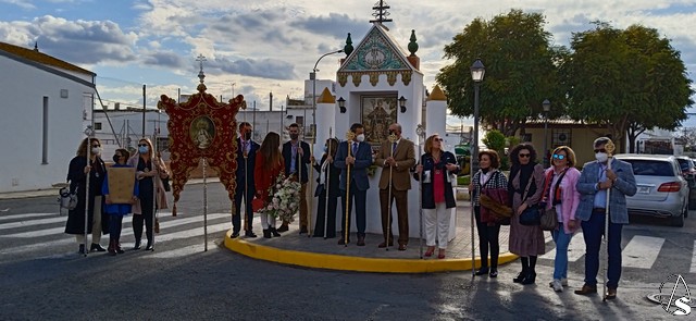 Fueron recibidos por algunos miembros de la Junta de Gobierno de la Pontificia, Real, Franciscana, Muy Antigua, Devota, Fervorosa e Ilustre Hermandad de Nuestra Señora Santa María de Aguas Santas, Coronada, Apud Deum, Patrona Canónica y Alcaldesa Honoraria Perpetua de Villaverde del Río, en el Monumento a San Benito Abad.