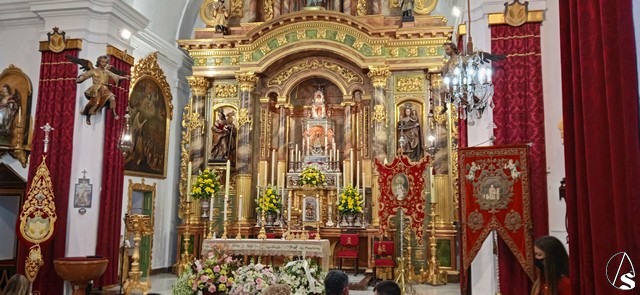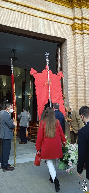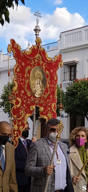 La Hermandad de Brenes acudió con el Simpecado de la Santísima Virgen del Rosario para celebrar la Sagrada Misa Jubilar a las 17:00 horas.