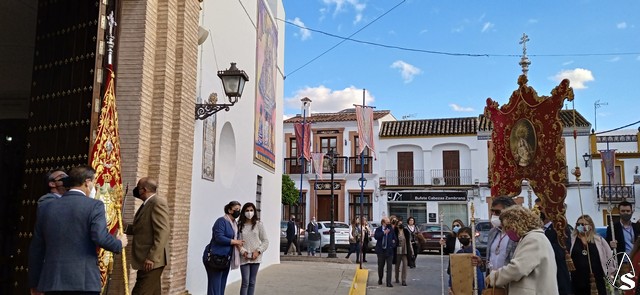 Desde dicho lugar peregrinaron por calle Pablo Picasso, plaza de Blas Infante, Campana y llegada a la Parroquia, donde en la Puerta Santa le esperaban los demás miembros de la corporación villaverdera.
