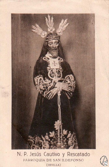 La Imagen sevillana de Jesús Cautivo de San Ildefonso es vicaria de la que, realizada con seguridad en el taller sevillano de los Ocampo para una Iglesia en tierras de África, fue agraviada por los musulmanes y rescatada por los Padres Trinitarios que la trasladaron a Madrid en 1682, donde todos la conocemos como “Cristo de Medinaceli” por el patronato que sobre su Capilla ostentaron los Duques de dicho título desde 1686. Los Conventos Trinitarios de diferentes ciudades españolas comenzaron a venerar sus propias réplicas de la Imagen madrileña. Una de ellas, la de Sevilla, recibió culto a lo largo de los siglos XVIII y XIX en el Templo de Santa María de Gracia, regentado por la misma orden y ubicado en la Plaza del Cristo de Burgos, cuya Cofradía tiene su sede social hoy en el edificio en que se integran los restos del antiguo Convento.