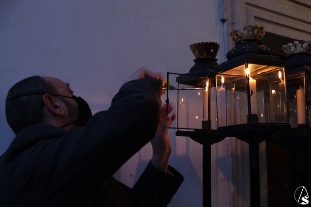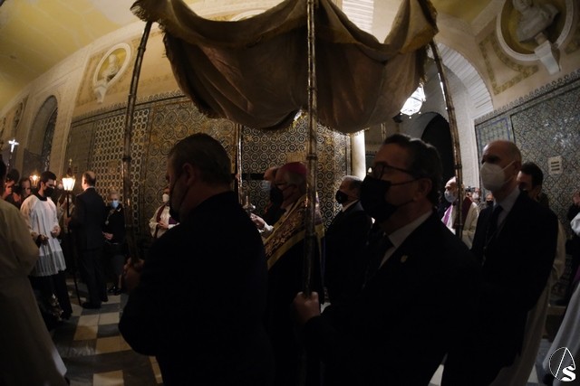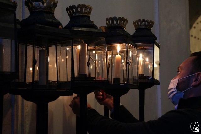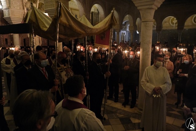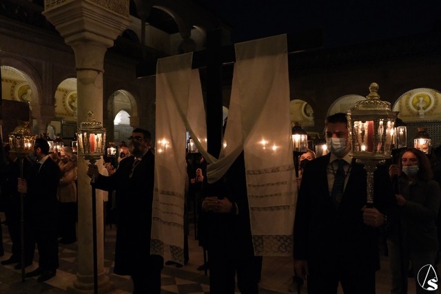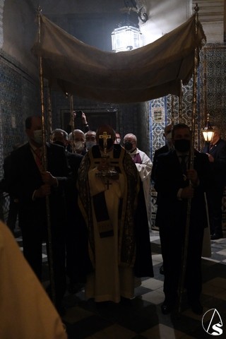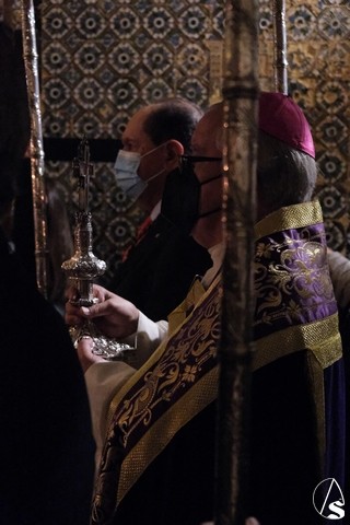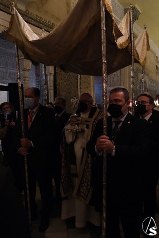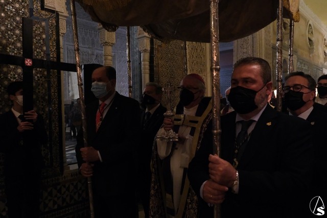 - Relicario con el Santo Lignum Crucis, acompañado de los Hermanos Mayores con faroles.
