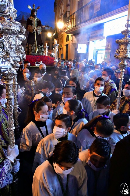 Como novedad, en el cuerpo de monaguillos que acompañó al Señor de la Sentencia se integraron por primera vez hermanas monaguillas.