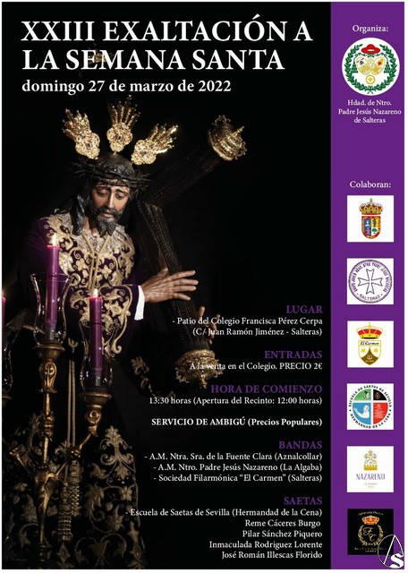 Arte Sacro. La Antigua y Fervorosa Hermandad del Dulce Nombre del Niño Jesús, Nuestro Padre Jesús Nazareno, María Santísima de los Dolores, San Juan Evangelista y Santa Ángela de la Cruz, de Salteras, organiza el próximo domingo 27 de marzo la XXIII Exaltación a la Semana Santa.