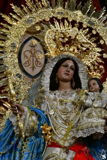 La Santisima Virgen y el niño estrenarán coronas de plata sobredoradas realizadas por Manuel Fernando Orfebre, bendecida por el arzobispo emérito de Sevilla, Juan José Asenjo el pasado 7 de octubre.