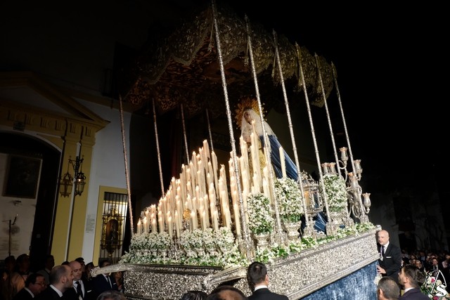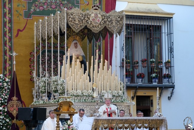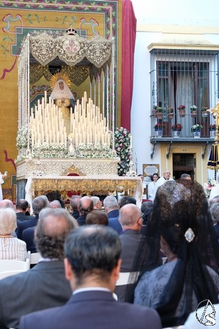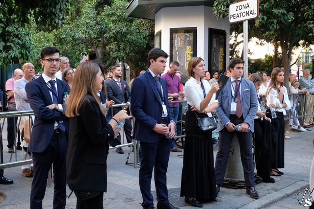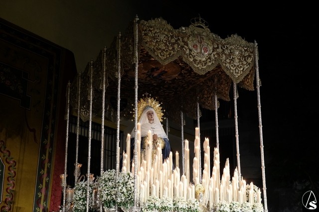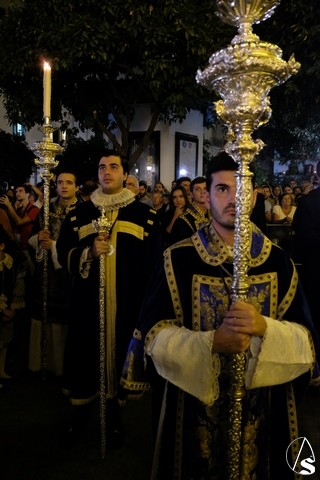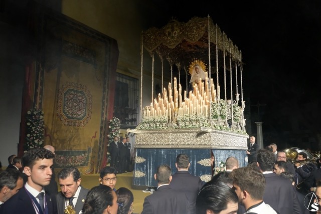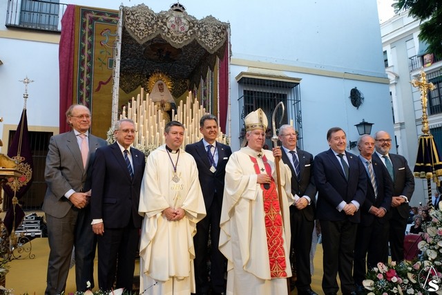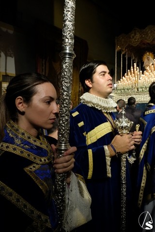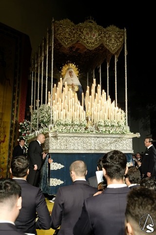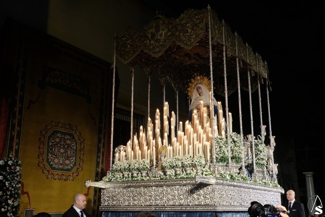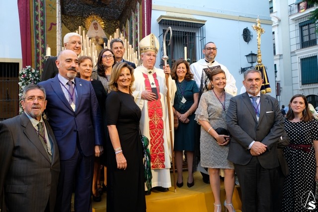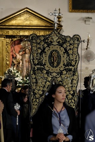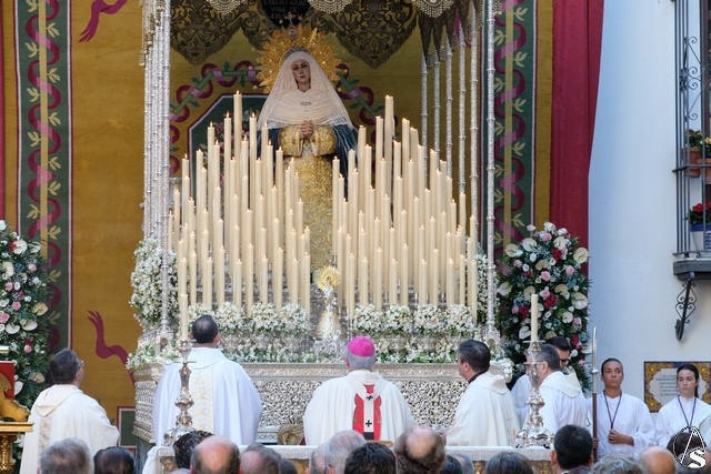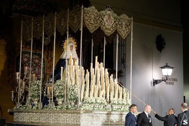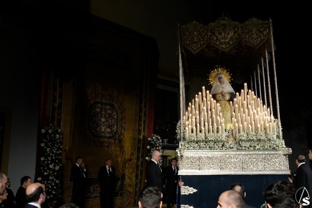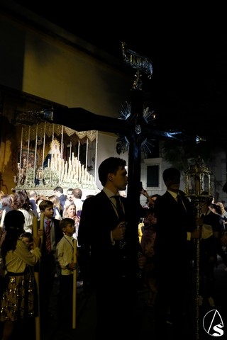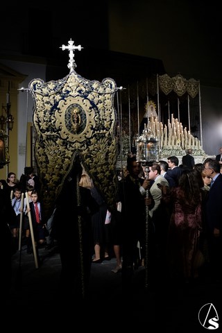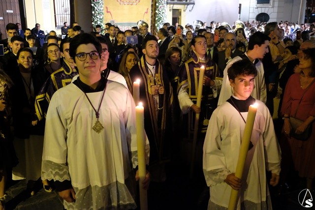 Al término de la celebración, se dispuso la plaza para la posterior salida extraordinaria de la Stma. Virgen. El cortejo comenzó a salir 10 minutos antos del horario previsto, las 20,45 horas, y un largo número de hermanos con cirio se pusieron en la calle, saliendo desde la capilla para acompañar a su Virgen.