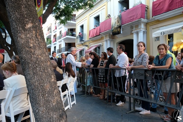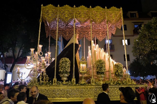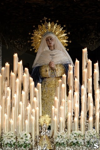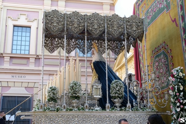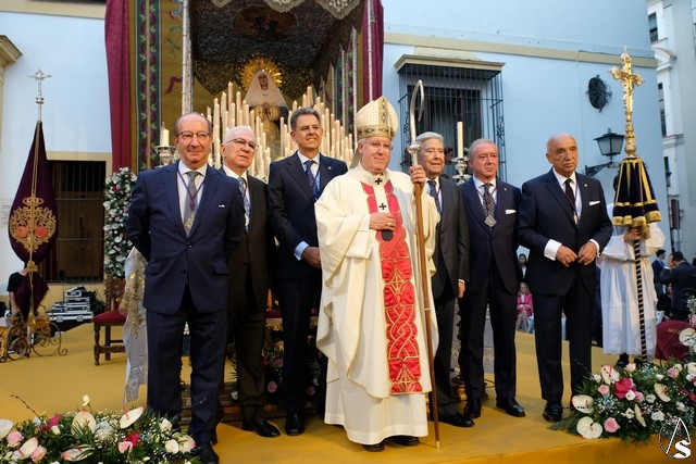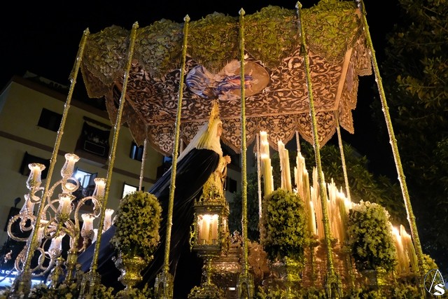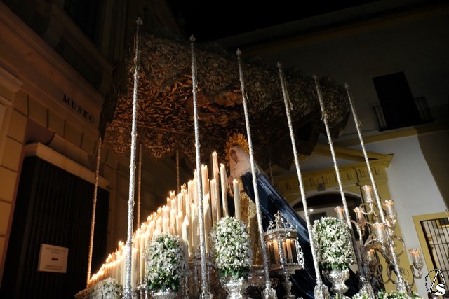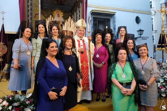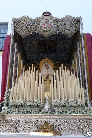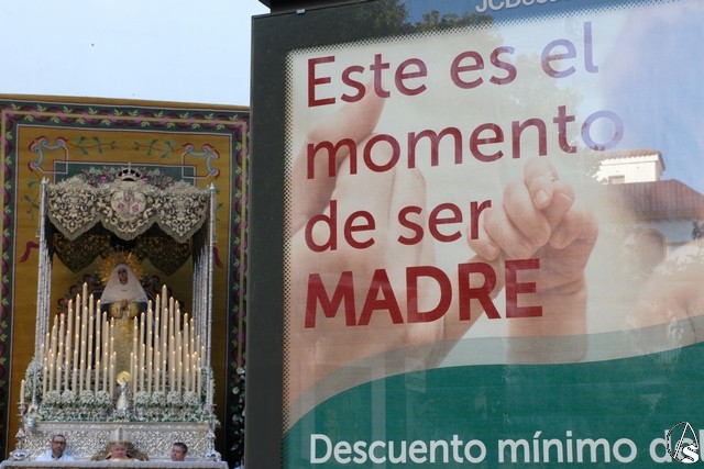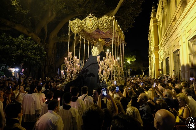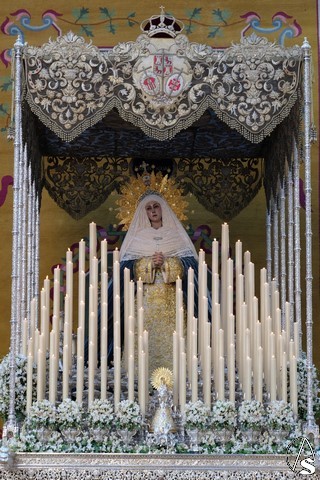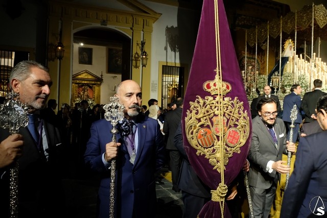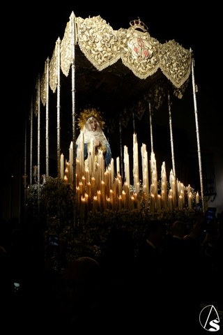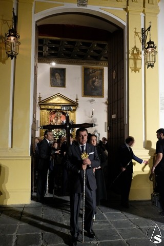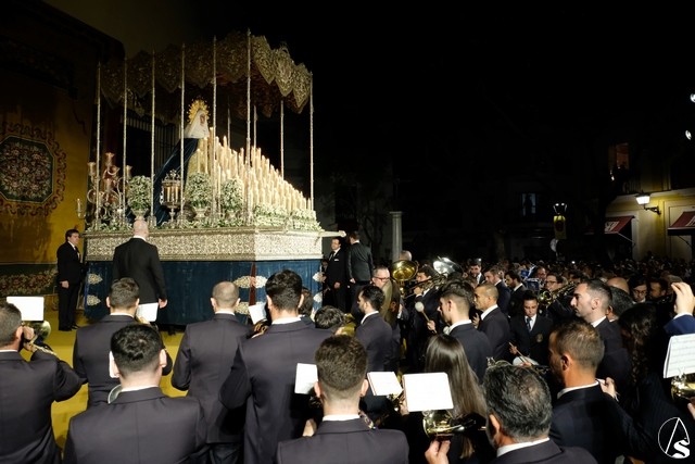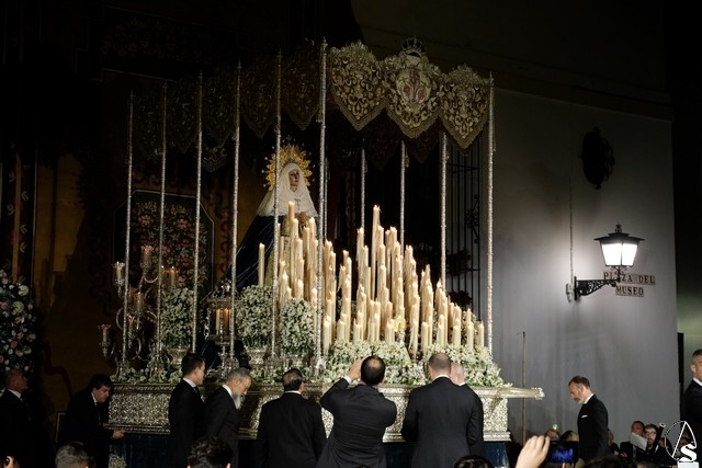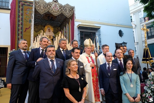 Al término de la celebración, se dispuso la plaza para la posterior salida extraordinaria de la Stma. Virgen. El cortejo comenzó a salir 10 minutos antos del horario previsto, las 20,45 horas, y un largo número de hermanos con cirio se pusieron en la calle, saliendo desde la capilla para acompañar a su Virgen.