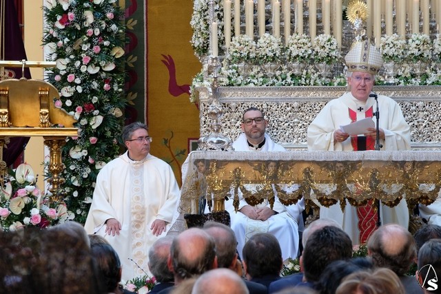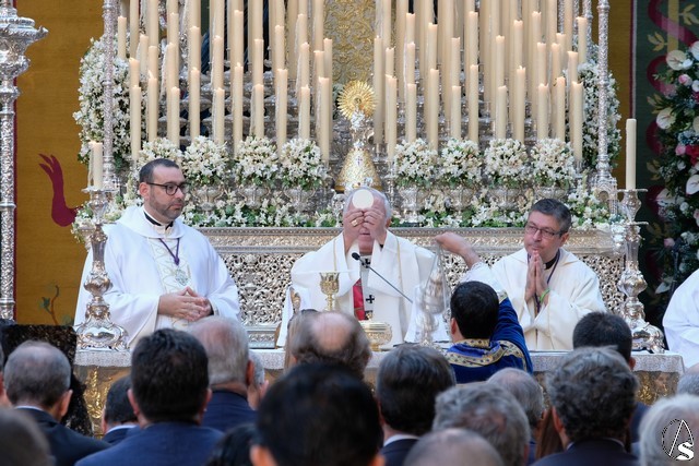 La eucaristía fue concelebrada por varios sacerdotes. Acompañaban en el altar al arzobispo, el párroco de San Vicente y director espiritual, Carlos Coloma y el párroco de la O y vicario episcopal para la Nueva Evangelización, Oscar Díaz. Tambien pudimos ver a Marcelino Manzano, Jose Antonio Plata, Luis Fernando Álvarez o Jesús Toro, entre otros.