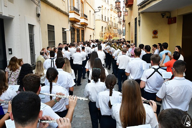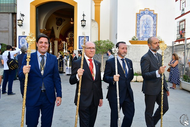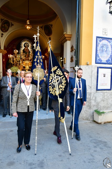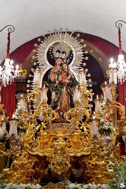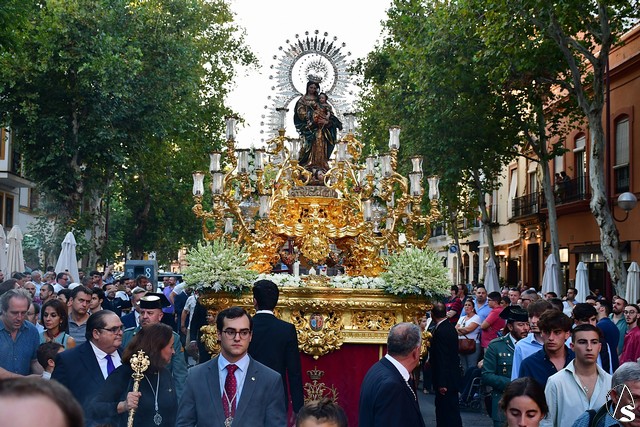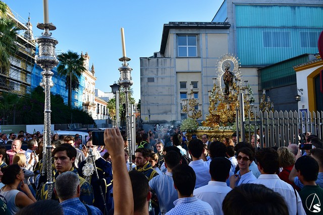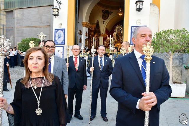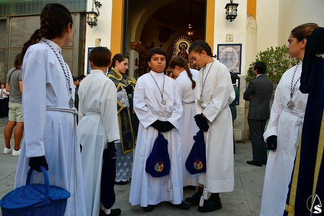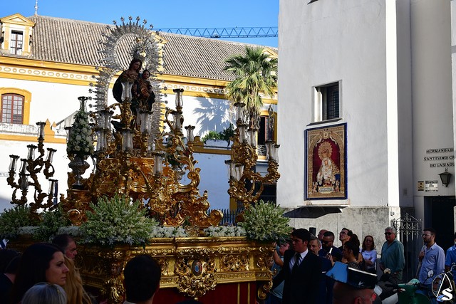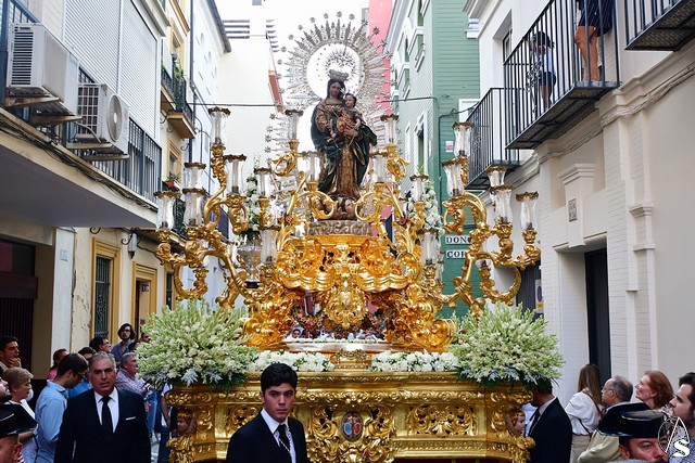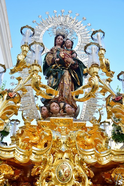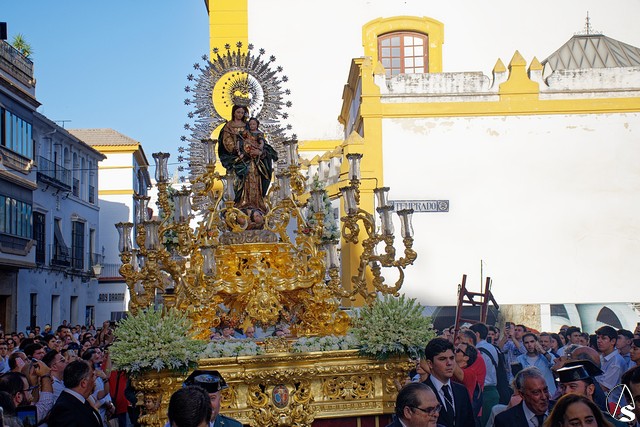 El paso fue portado este año por la cuadrilla de costaleros de Ntra. Sra. de Guadalupe, con su capataz general Gónzalo Carrión Fernández al frente y contó, abriendo el cortejo, la banda de cornetas y tambores Nuestra Señora del Rosario Coronada y trás el paso de la Virgen, la banda de música municipal de Mairena del Alcor, combinando un repertorio de marchas mas “alegres” con otras más “clasicas”.