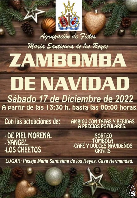 Arte Sacro. El sábado 17 de diciembre, a partir de las 13,30 horas, tendrá lugar la tradicional Zambomba de Navidad en la casa hermandad de la Virgen de los Reyes de Amate. Como siempre, con tapas y bebidas a precios populares, y el mejor ambiente navideño.