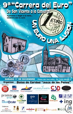 Arte Sacro. La bolsa de caridad “Jesús de las Penas”, de la Hermandad y Cofradía de Nazarenos de Nuestro Padre Jesús de las Penas y María Santísima de los Dolores, siendo consciente de la realidad socioeconómica por las que atraviesan muchas familias sevillanas, y acercándose las fechas navideñas, realizará de nuevo este año la 9ª Carrera del Euro, bajo el lema “De San Vicente a la Catedral… Un euro, una ilusión”, que se desarrollará el sábado 17 de diciembre en la Plaza del Salvador en horario de 11:00 a 22:00 horas ininterrumpidamente.